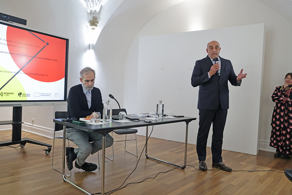 O evento contou com a participação do Presidente e do Vice presidente da CCDR Alentejo, I.P., Ricardo Pinheiro e Henrique Sim-Sim, respetivamente, reforçando o compromisso da instituição com o apoio aos agentes culturais e criativos e com a dinamização de oportunidades de financiamento europeu na região.
