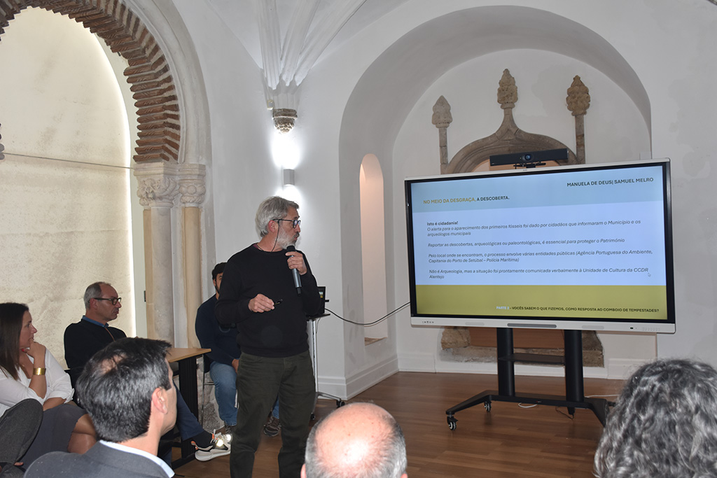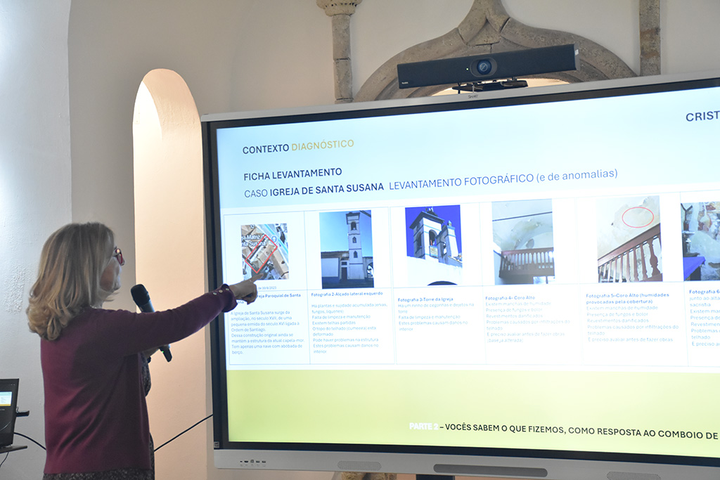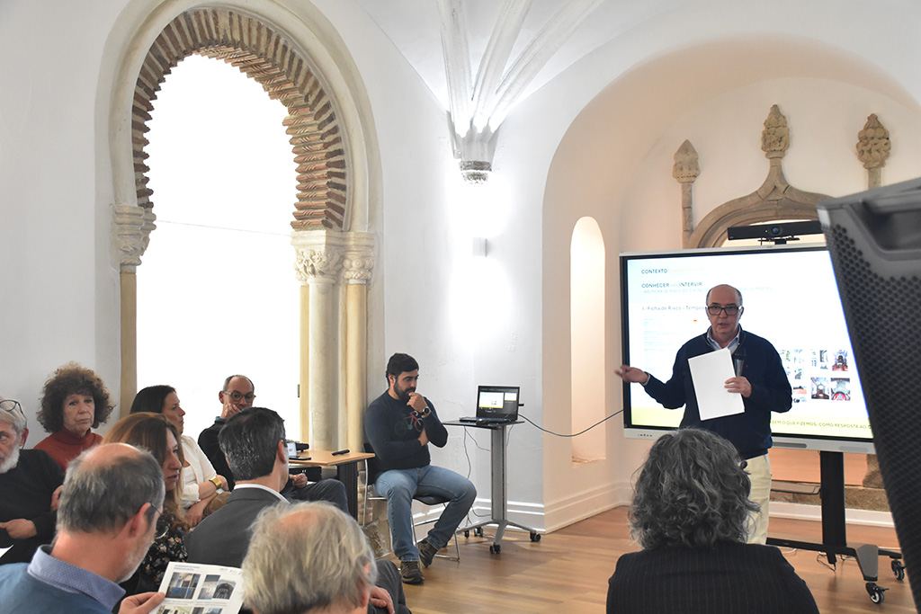 A iniciativa permitiu apresentar as principais linhas de intervenção da Equipa de Salvaguarda da CCDR Alentejo face aos impactos provocados pelo recente fenómeno climático extremo, conhecido como “comboio de tempestades”, no património edificado classificado, ou em vias de classificação, da região Alentejo.