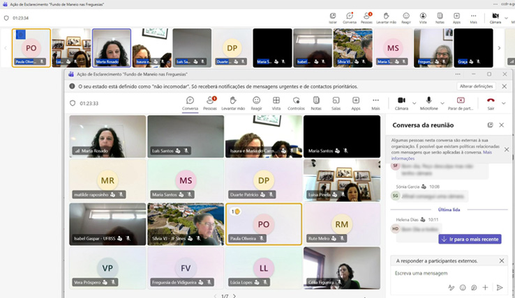 A CCDR Alentejo, I.P., através da Divisão de Cooperação com as Autarquias Locais, promoveu, no âmbito do projeto da sua iniciativa “Formação e Capacitação da Administração Local 2026”, uma Ação de Esclarecimento dirigida aos eleitos locais e aos trabalhadores das Freguesias da região, subordinada ao tema “O Fundo de Maneio nas Freguesias – Conceitos, regras e boas práticas”, na qual participaram, por videoconferência, 117 participantes de 62 freguesias da região.